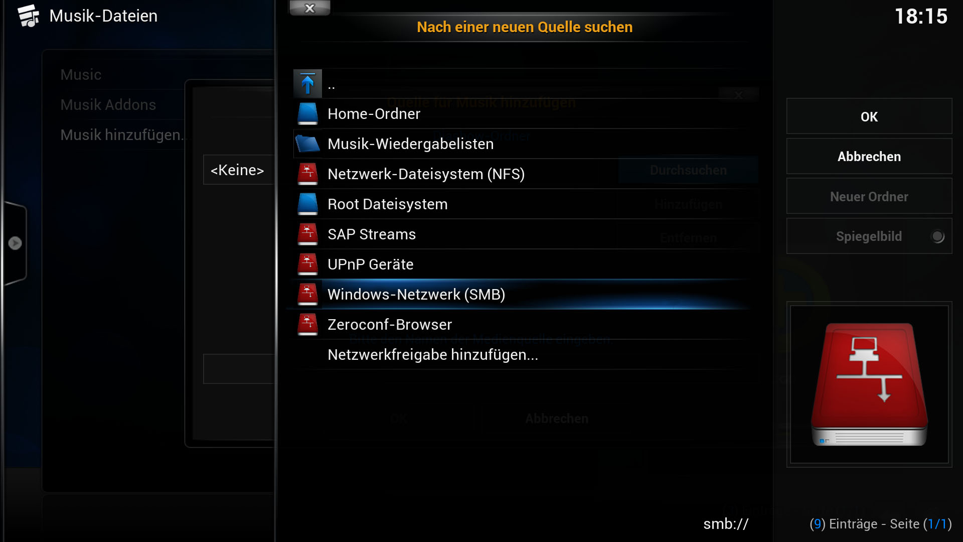 Ein neues fenster öffnet sich, da ich auf meinen Server zugreifen will, wähle ich "Windows-Netzwerk (SMB)"