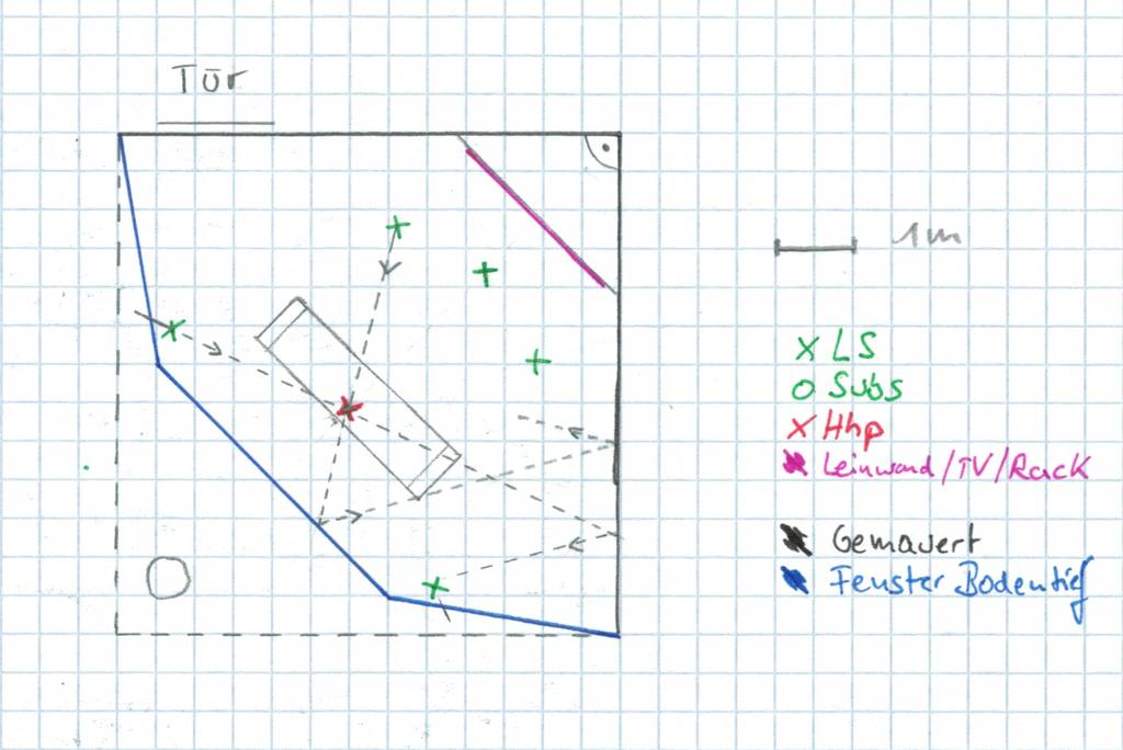Natürlich habe ich direkt überlegt wie eigtl. so ein "ideales" Heimkino/Hifi-taugliches Wohnzimmer aussehen sollte...