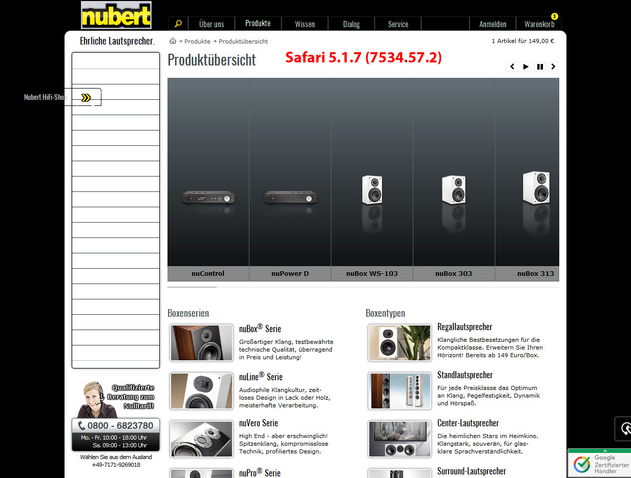 Bin ich in der Produktansicht muss ich entweder über den kleinen Navtrail zurück oder aber den Back-Button des Browsers nutzen oder wieder über das Top-Menü gehen um auf die Übersichtsseite zu gelangen.