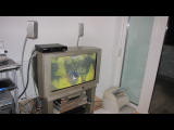 (Der Fernseher steht auf einem original Zubehörteil, also auf Ohrhöhe).