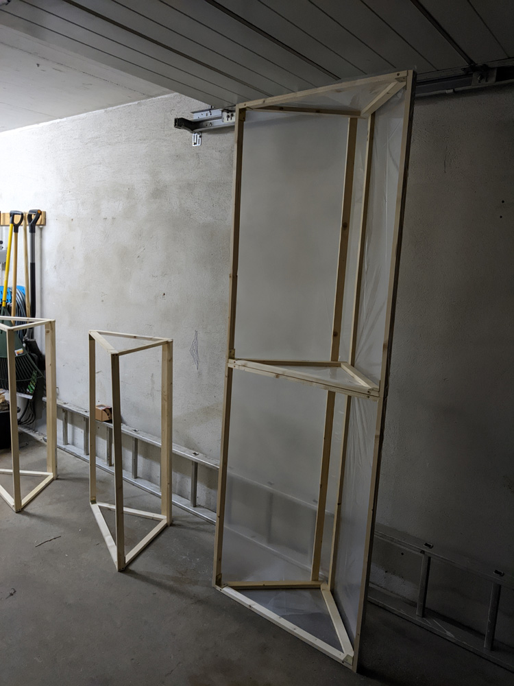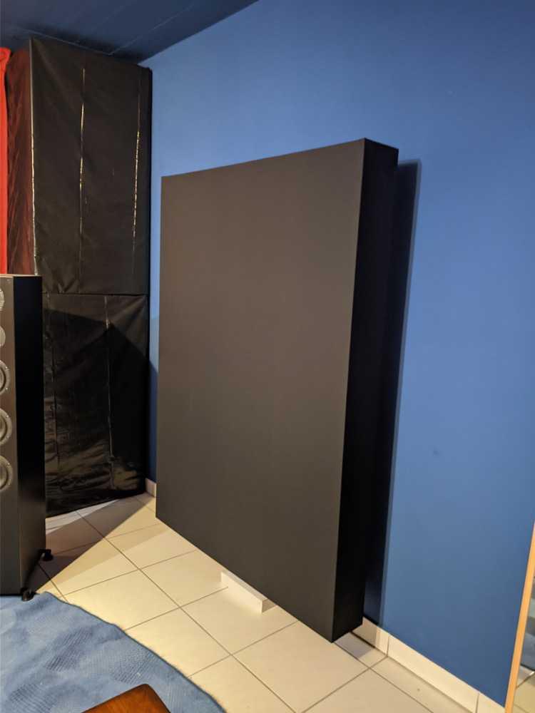 ). Außerdem habe ich zwei große Rahmen für Akustikbilder gebastelt, die ich demnächst fertigstellen werde. Diese sollen den "First Reflection Points" an den Seitenwänden entgegenwirken. Der Bau von Schallabsorbern an der Decke ist geplant.