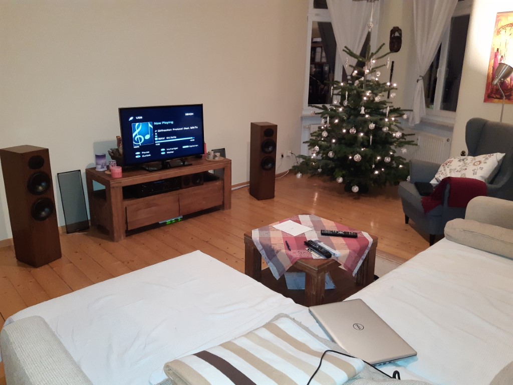 Jetzt wäre die Frage, ob man die LS viell. bei ca. 100 Hz begrenzt und einen Sub im Raum aufstellt, der dann untenrum freier spielen kann. Leider kann ich die LS nicht anders stellen, da zieht mir die Frau die Ohren lang
