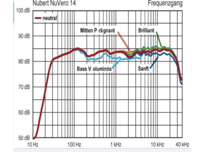 Domm2000 hat geschrieben:Die nuVero 14 fällt jenseits der 30 Hz schön steil ab. Bei 20 Hz beträgt der Pegelabfall schon etwa -10dB im Vergleich zu 30 Hz.