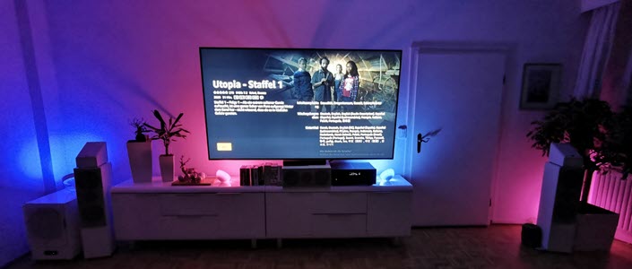 Receiver: Yamaha RX-A2080; Universalplayer: Sony UBP-X1000ES ; CD/SACD-Player Stereo: Marantz SA7003 , Plattenspieler: Pro-Ject Debut III, Tapedeck: Yamaha KX-300