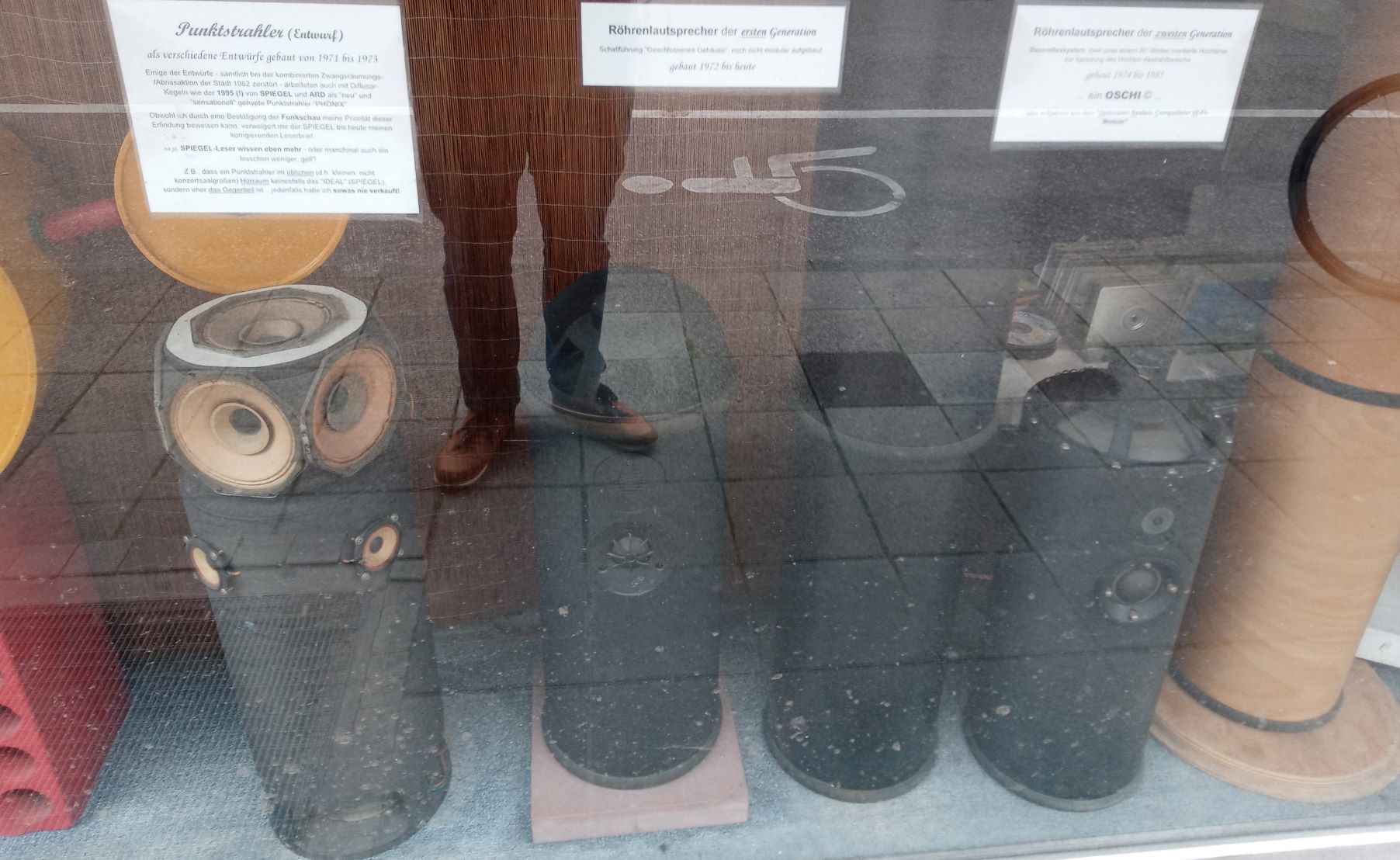 Die Lautsprecher im Schaufenster zeigen die Historie und gleichzeitig die Lebensgeschichte von Jürgen Leppert. Die auf deinen Fotos haben nichts mit der aktuellen Version zu tun.