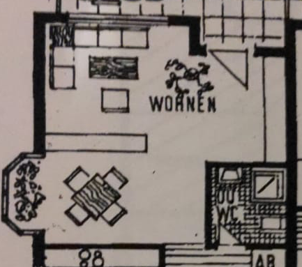 Vorn links am Fenster soll mein Schreibtisch und/oder ein kleiner Esstisch hin.