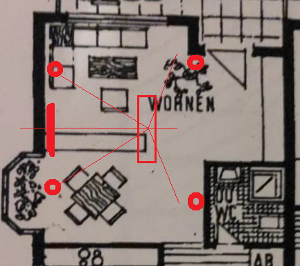 V4: Fernseher an die linke Wand, Couch in der Raummitte? (Bassloch?)