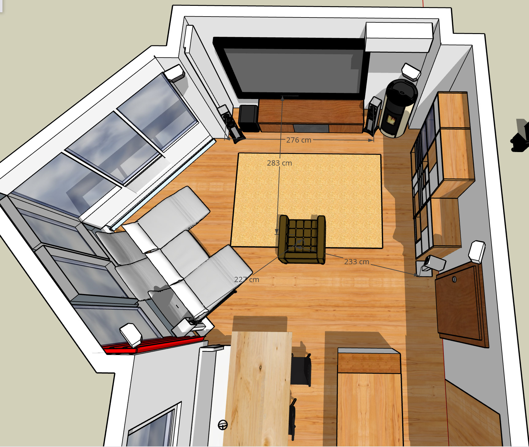 Hmmm die Highs kann ich eigentlich beliebig an der Decke platzieren, nur mit den Surrounds wirds schwer. Rechts ist die Tür links ist das Sofa bzw weiter hinten der Esstisch + Sitzbank.mcBrandy hat geschrieben: Do 18. Nov 2021, 08:47 ich geh jetzt mal davon aus, dass du keine andere Möglichkeit hast, die High-Lautsprecher zu positionieren.