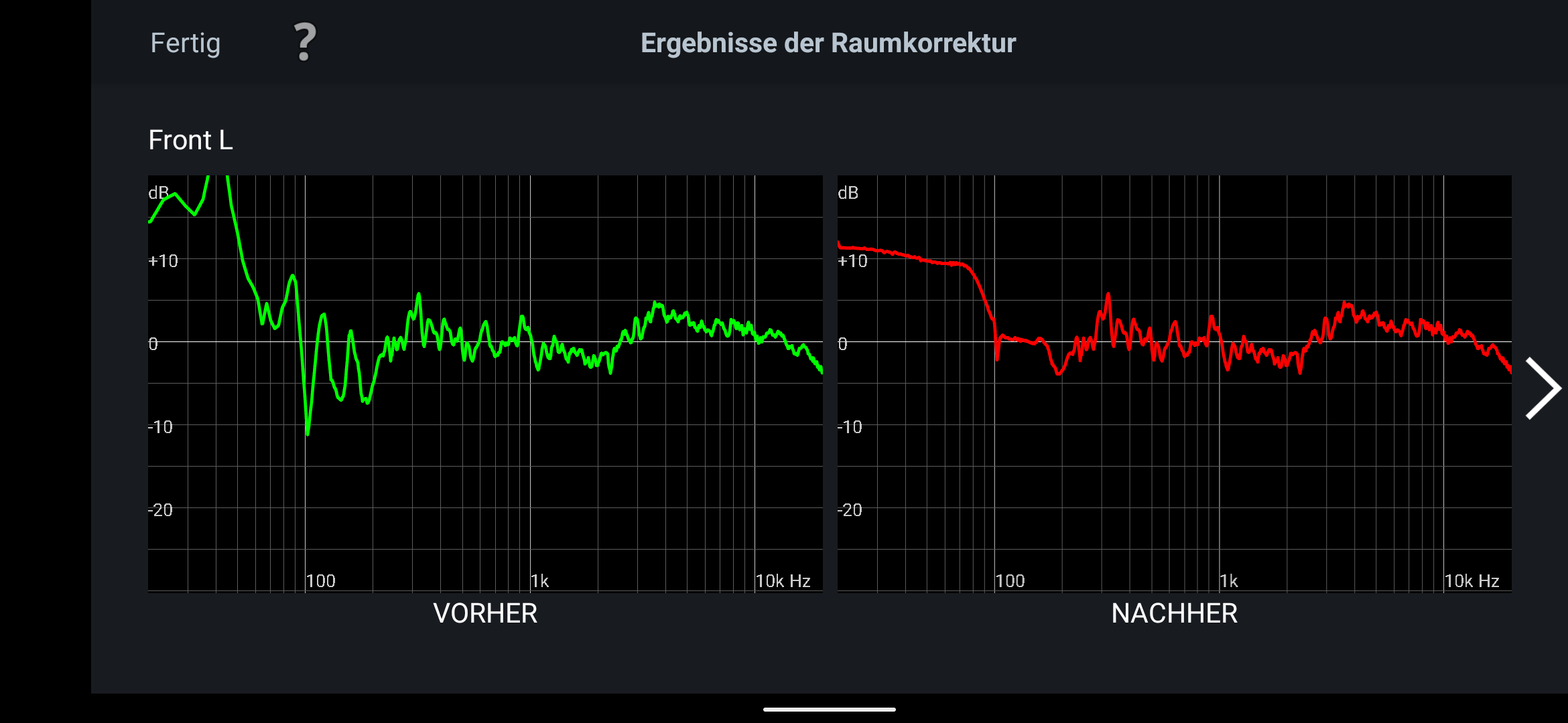 Meine Boxen stehen direkt an der Wand gegenüber von der Couch, die auch direkt an der Wand steht. Daher hätte ich ohne Kalibrierung gewaltige Bassmoden.
