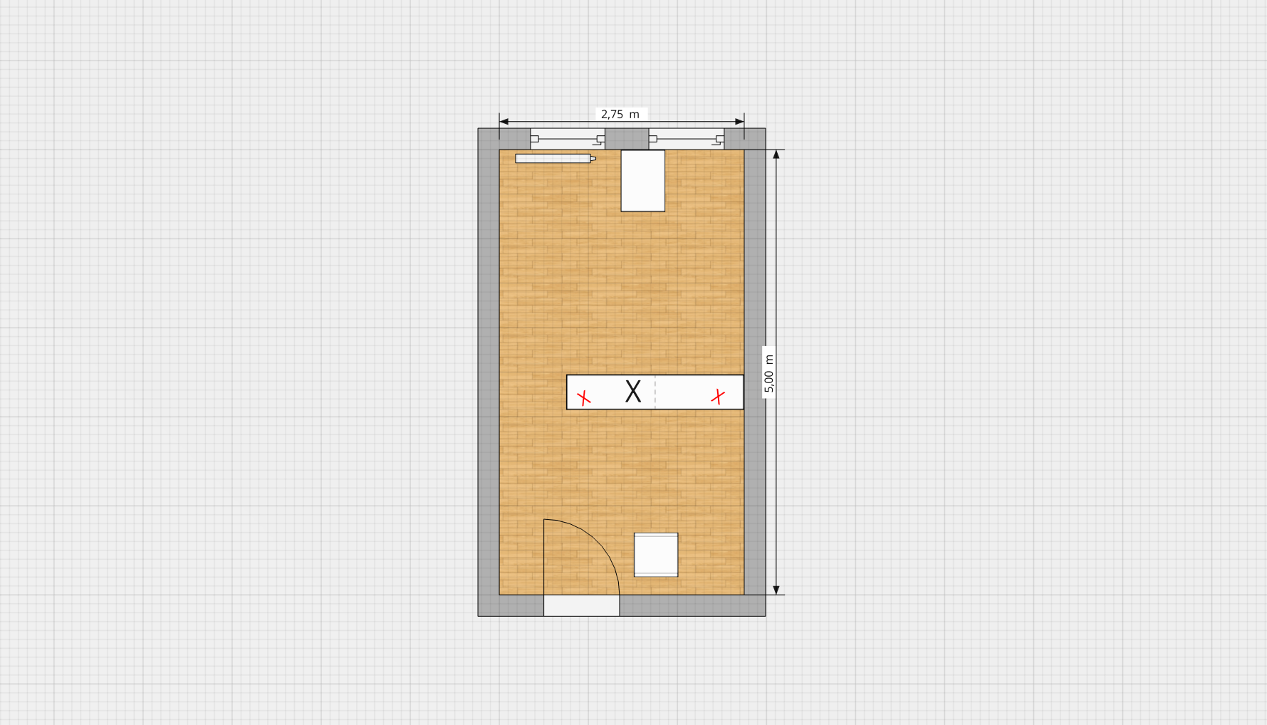 Ich habe auch mal eine Raumskizze angelegt falls das hilft, Raumhöhe 2,33 m: Der Raum ist tatsächlich fast komplett leer bis auf diverses Kinderspielzeug, einen Kindertisch und ein paar Sportgeräte. Es ist lediglich als Raumteiler noch ein niedriges Holzregal/Lowboard drin, in 1 m Höhe stehen die A125 angewinkelt auf älteren NuBase, dazwischen auf halber Höhe ein AW443. Hörbereich ist in dem Feld neben der Tür. Kein analytisches Hören, sondern mit Spaß und Bewegung, dafür aber aktuell die intensivste Möglichkeit für Musik.