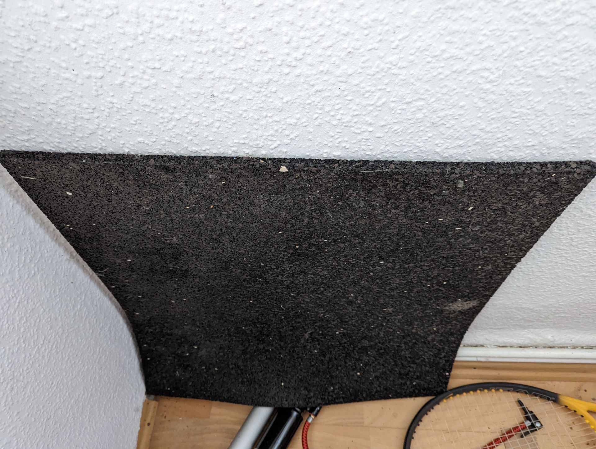 Was gegen Vibrationen vom Subwoofer hilft: Eine 5 cm Granitplatte ist gut, so wie ich sie habe und falls eine Gummimatte, dann muss diese dick genug sein. 2 cm davon habe ich auch noch unter die Granitplatte gepackt. Darunter kommt noch ein Teppich und dann erst Laminat.