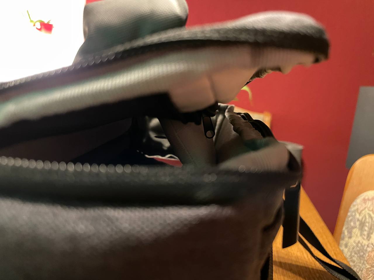Man kann es aufgrund der Perspektive nicht so genau erkennen, aber schrammelt der Reißverschluss der Innentasche im Deckel nicht auf der Plexiglas (oder was immer das ist) Platte des nuGo?