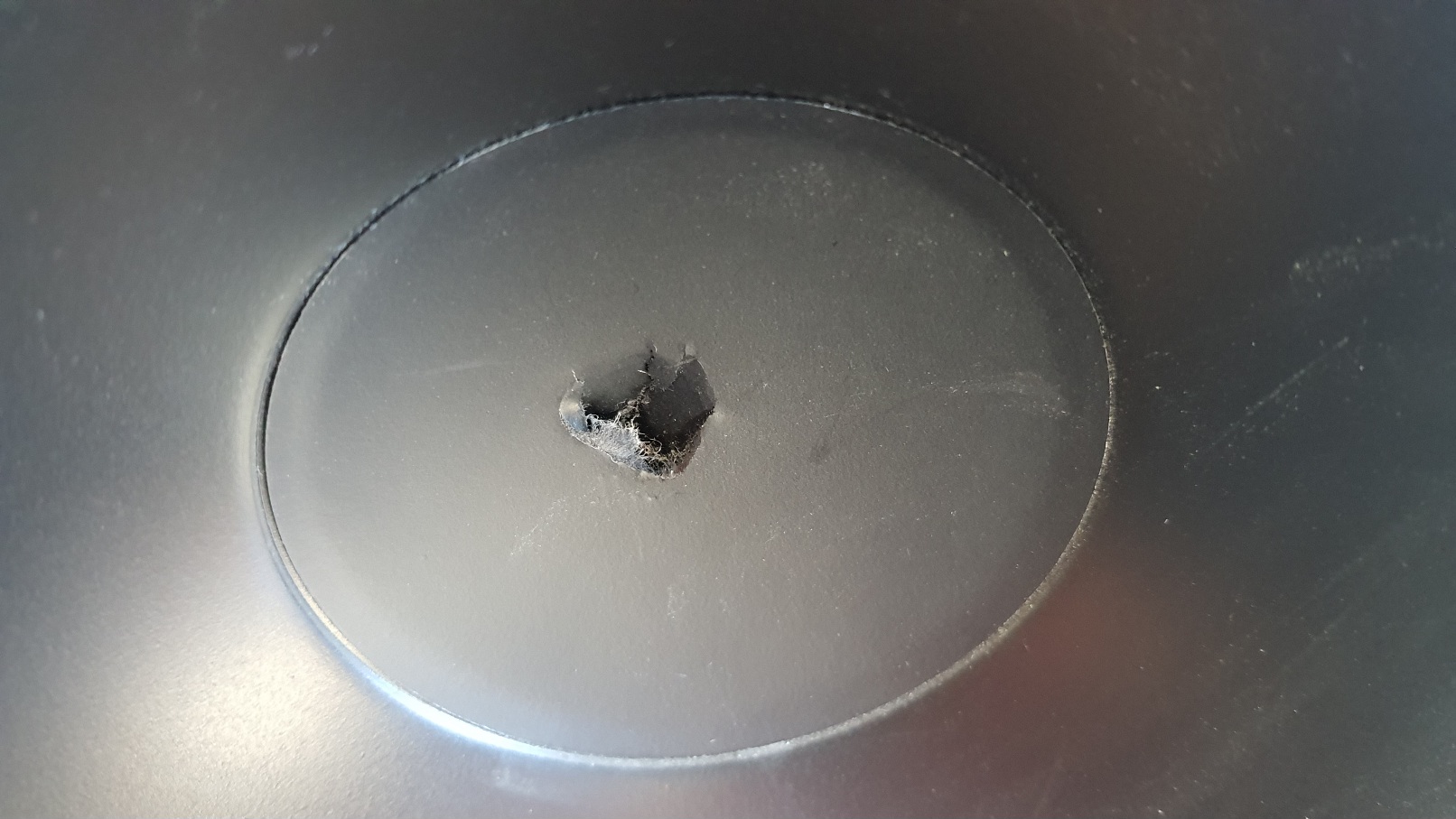 Jedenfalls musste ich feststellen, dass eine der Bassmenbranen meiner Nubox 681 nun ein Loch hat. Siehe Foto.