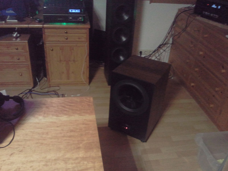 Hier 3 schnell gemachte Bilder. Der Subwoofer hat momenten keine feste Position weil ich ihn dauernd umstell. Momentan ist auch alles ein wenig so eine Übergangslösung