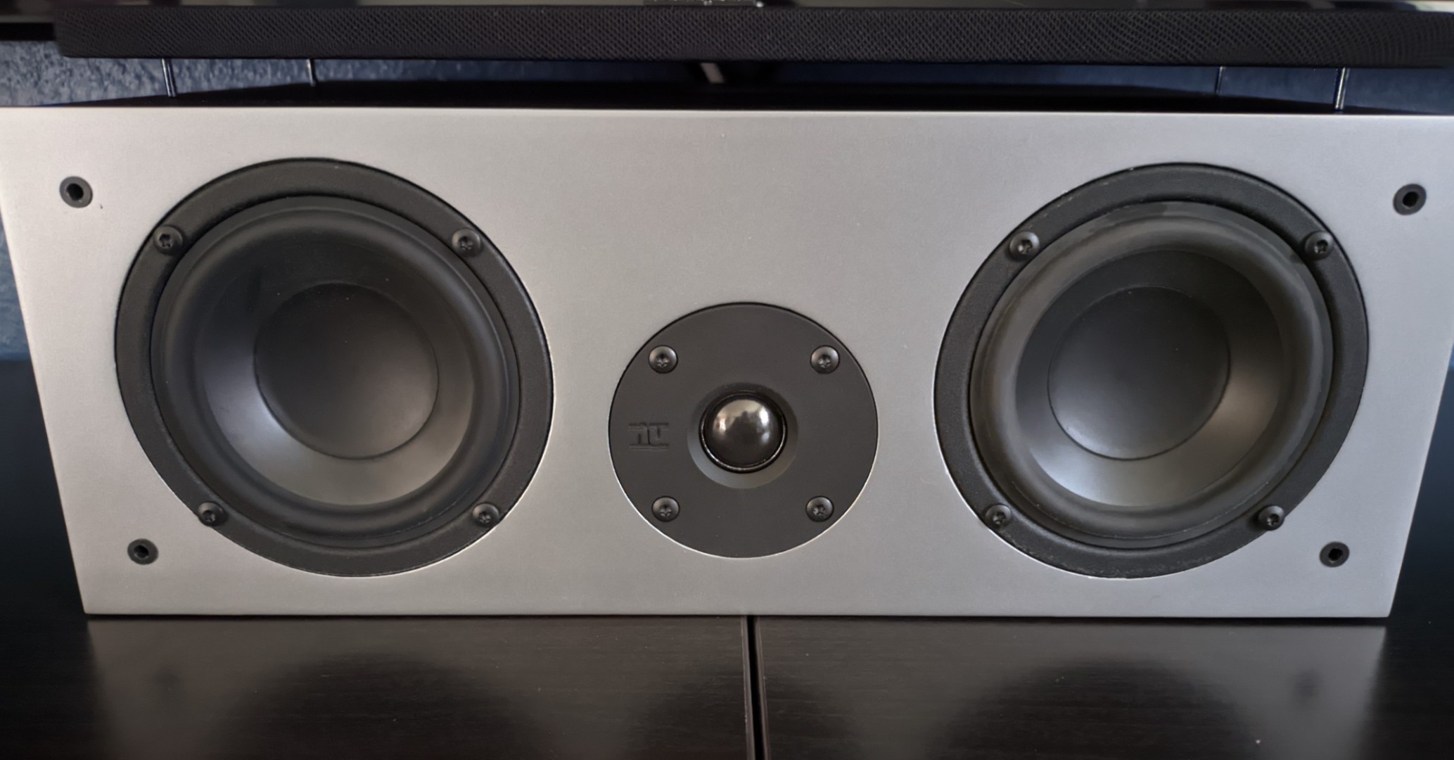 Der Hochtöner des Centers ist jetzt nach unten gerichtet, also eigentlich für die Position oberhalb des Fernsehers vorgesehen.