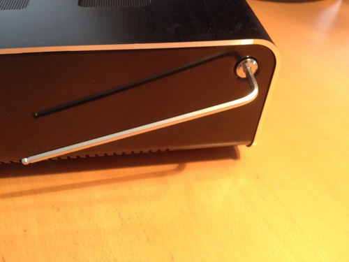 Nun müssen die Imbus - Schrauben an den Seiten gelöst werden. Danach die hinteren Schrauben am Gehäuse Deckel.