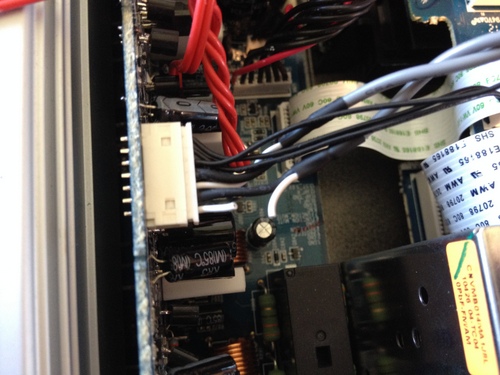 Wie man sieht habe ich einfach die vorhandenen Vorstufenkabel auf die neuen Ausgangsbuchsen umgelötet. Danach 2 neue Kabel von der Endstufenplatine an die anderen beiden Buchsen angelötet. Ich bin hier einfach auf die Platine gegangen war für mich das einfachste - man braucht allerdings etwas ruhige Nerven :-)