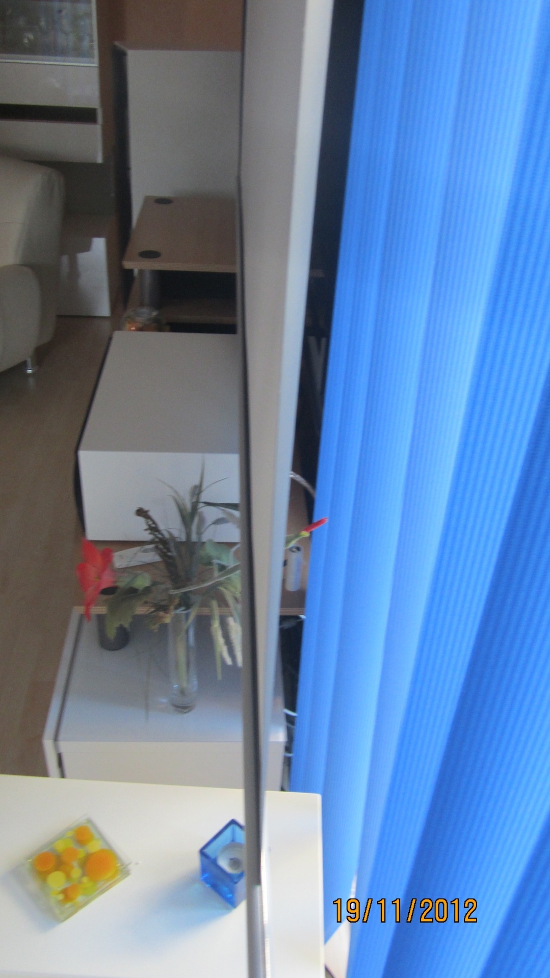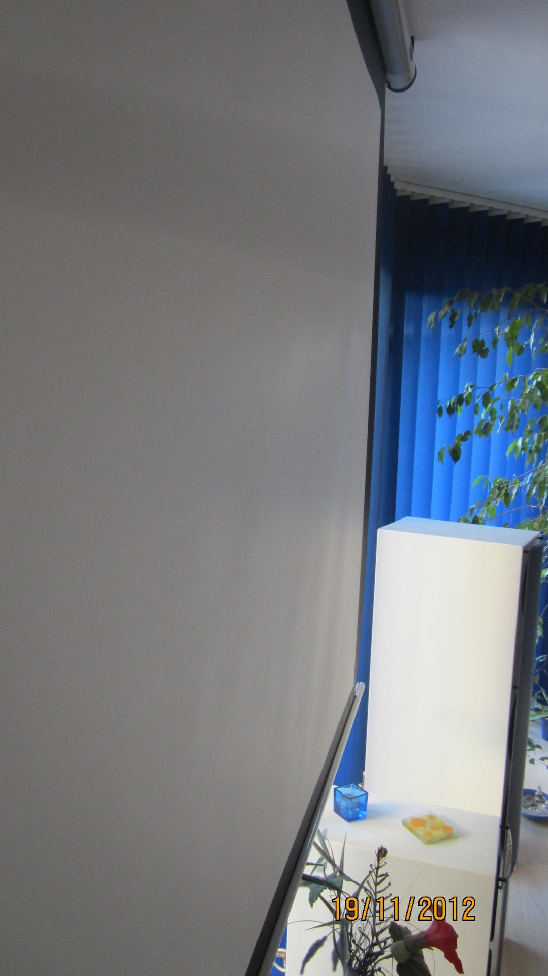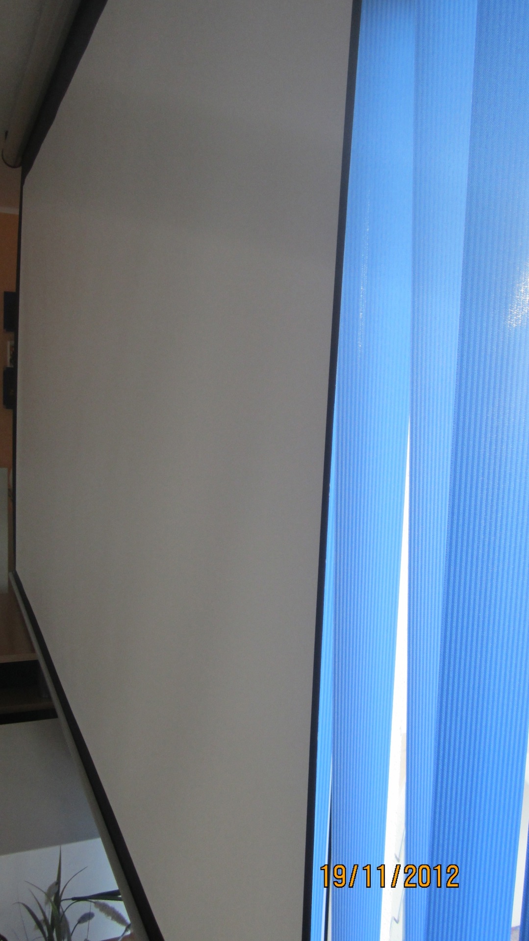 Was du auf dem dritten BIld siehst, ist eigentlich der "Knick" der entstanden ist weil ich die Leinwand nie bis zur Decke hochfahre, sondern nur so dass klein Thomas noch rankommt. (Sind höhere Decken als Standarthöhe)