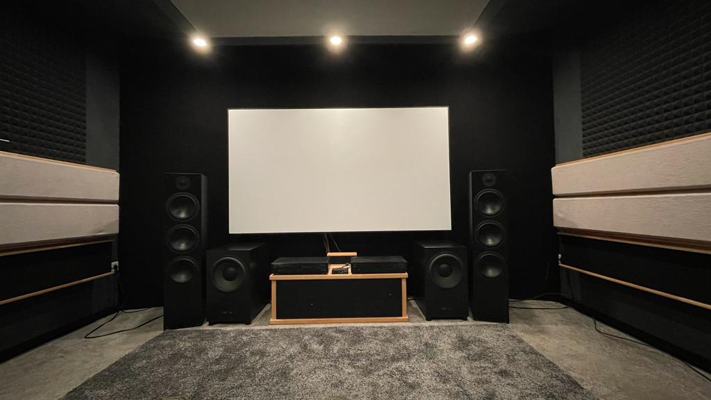Deckensegel war schon vorhanden, die Kosten davon mit Holz, Stoff 1 m3 Sonorock und Kleinigkeiten wie Beläuchtung, softclose Topfbänder für die Atmos Lautsprecher, Akustikstoff usw waren unter 200€