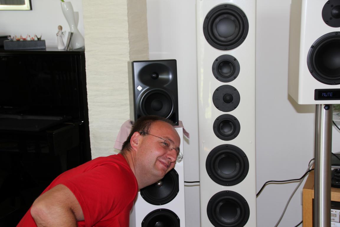 Fazit: Die Neumanns ließen uns alle in der Nacht zum nuDay bei Thomas unruhig schlafen und ich bin daher sehr froh wie es für mich ausging. Sie weiß natürlich klanglich zu gefallen, aber das hängt IMHO stark von der Musikrichtung und der persönlich Vorlieben ab. Optisch ist dieser "Blechkasten" aus feinem Alu mit Hammerschlag-Lack im Wohzimmer für mich ein absolutes no-go. Nichtmal im Traum würde ich mir sie da hinstellen. Auch hier hat jeder sicherlich andere Ansprüche, aber allein danach gehend würde ich immer die nuPro nehmen. Dass die nuVero und auch die nuPro als auch die XTZ pegeltechnisch der Neumann überlegen sind, sollte auch nicht unerwähnt bleiben. Ohne Sub wäre mir pers. der Maximalpegel der Neumann zu gering. Der Limiter hat uns hier recht schnell gezeigt wann es zu viel wird aber für ihre Größe war das trotzdem sehr beachtlich. Alles in allem durften wir an diesem Tag hervorragende Boxen hören, denn das waren und sind sie alle. Jeder Topf findet seinen Deckel und so ist es eben auch bei Lautsprechern. Ich werde den Nubis weiter die Treue halten und jene die nun bei der Konkurrenz hören wünsche ich weiter viel Spaß. Vielleicht einigt man sich einfach darauf dass Speaker A einem persönlich besser gefällt als Speaker B. Verallgemeinern bringt ja nix
