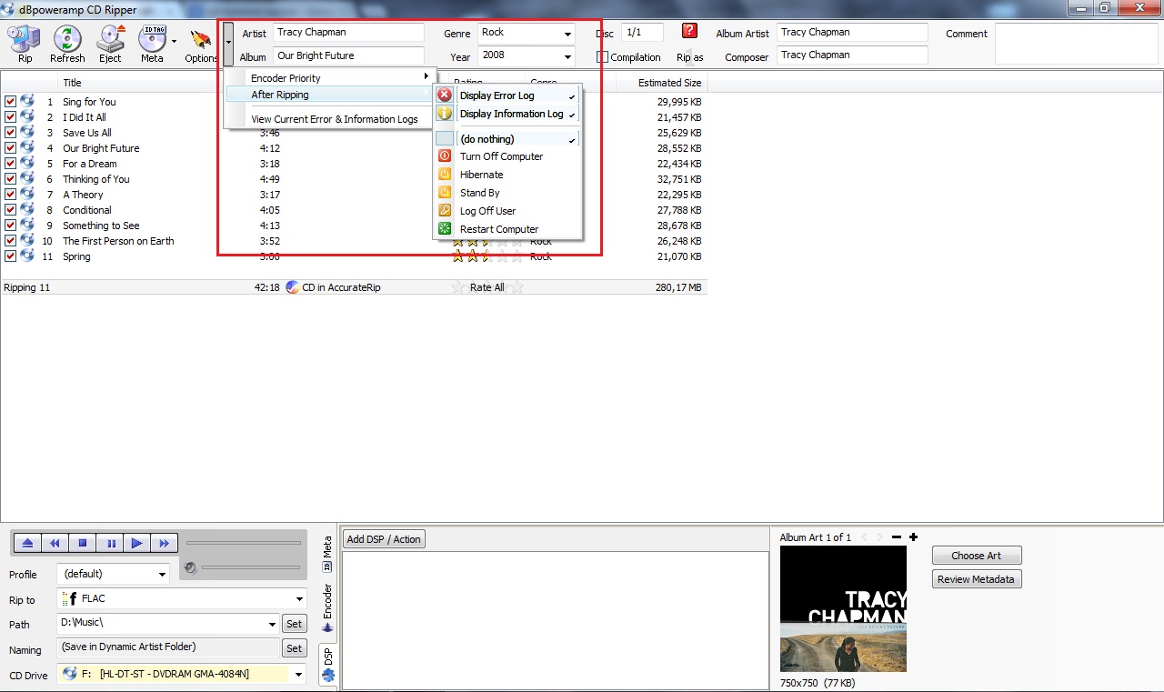 dBpoweramp nutze ich seid einiger Zeit zum rippen meiner CD´s auf die Festplatte und bin von Anfang an sehr begeistert über die Funktionsweise und Leistungsfähigkeit diesen Programms.