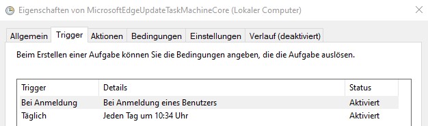 Seit ca. einer Woche öffnet sich beim Systemstart meines PCs ungefragt der Edge-Browser. Wohlgemerkt, wenn der Rechner komplett vom Netz getrennt war. Starte ich den PC neu, tritt das Phänomen nicht auf. Selbstverständlich ist Edge NICHT im Autostart, da sah ich nämlich zuerst nach.