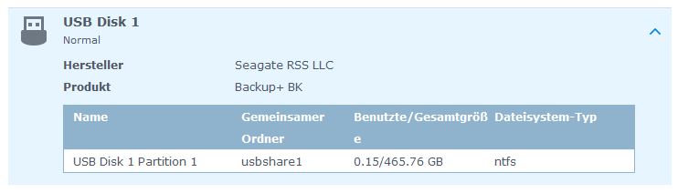 Re: Synology Externe HD an USB Port