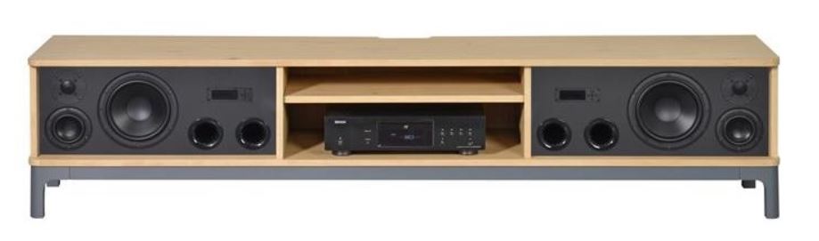 An die A600 dachte ich als erstes, als ich die großen Schallwände sah, hielt dann aber die AS250 für wahrscheinlicher. Das Möbel ist die Rettung für alle WAF-Geplagten, die "Männerboxen" mit richtig Dampf haben wollen