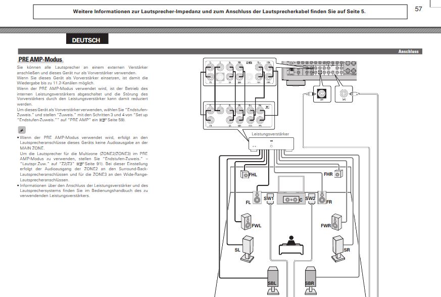 Es wird doch ausschließlich darauf hingewiesen dass durch eine separate StereoENDSTUFE das Denon Netzteil entlastet werden kann und dadurch beliebig in der Leistung skaliert