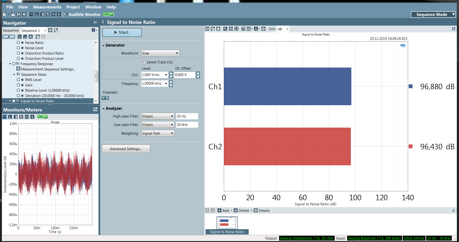 Die Einstellungen von Audio Sience Review waren für mich nicht alle nachvollziehbar. Teilweise werden sie auf den Screenshots erfasst, teilweise aber auch nicht. Teilweise gab es später noch Ergänzungen beziehungsweise Verweise auf das Messverfahren. Manche der Ergebnisse stehen aus meiner Sicht im Widerspruch zueinander, zum Beispiel die SINAD-Messung zur SNR-Full-Scale-Messung.