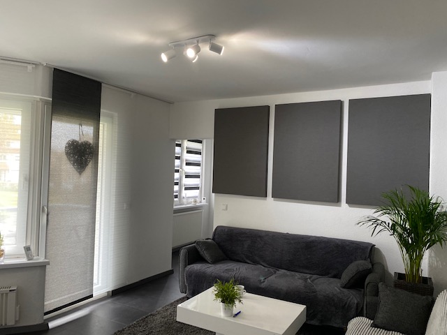 Für den Durchgang hinten wo die Absorber hängen ist aber schon eine Tür bestellt. Könnte sich im Klang auch nochmal bemerkbar machen wenn der Raum vom WZ abgetrennt sein wird.