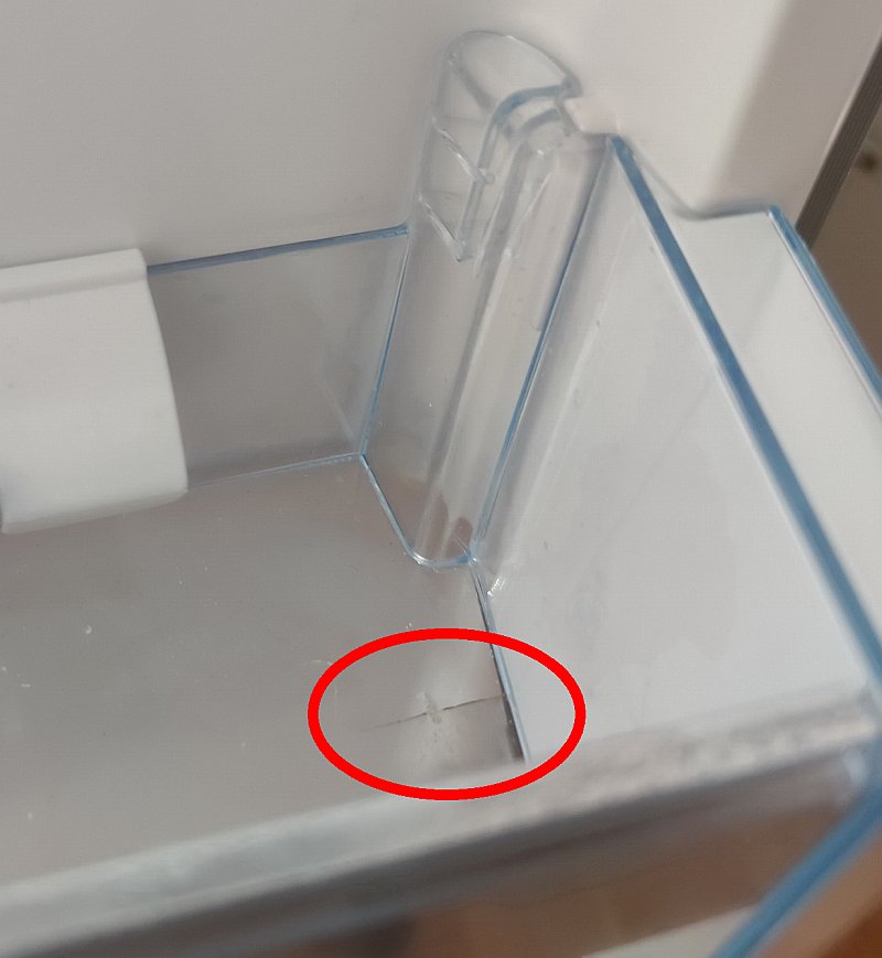 Erst bricht das kleine Stueck ab,und dan sackt es langsam immer weiter und immer weiter runter....so als ob es "schreien wuerde"-"wird langsam Zeit ne neue Ablage zu kaufen"...