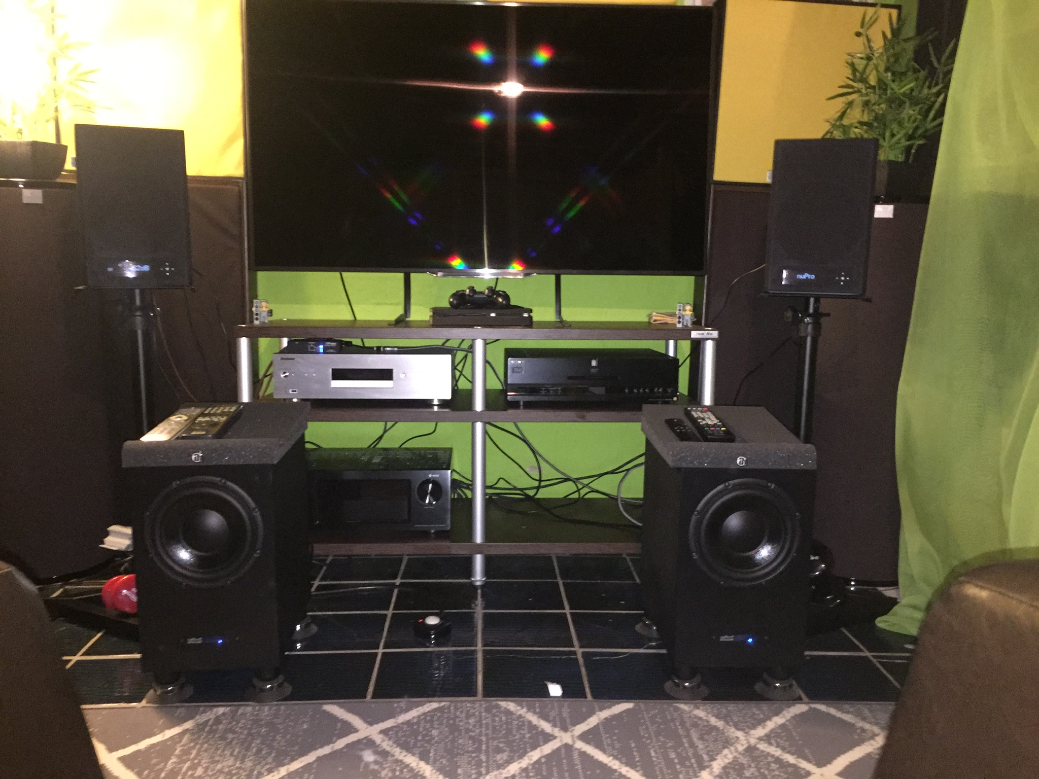 X4000, Antimode nebst beide AW-443, ich habe mich bewußt für eine Kabelverbindung zwischen beiden nuPros entschieden. Nutzen tue ich das eingebaute Blauzahn Modul. Der Netzwerkplayer ist quasi arbeitslos geworden. Getrennt wird die X bei 70 Hz, Phase der Subs liegen bei 180 Pahse. Ich musste hier echt was machen, meine Frau war genervt. Der Bass über die 4000 ist schon sehr massiv. Ich nutze übrigens die Raumkalibration von Nubert ebenfalls.