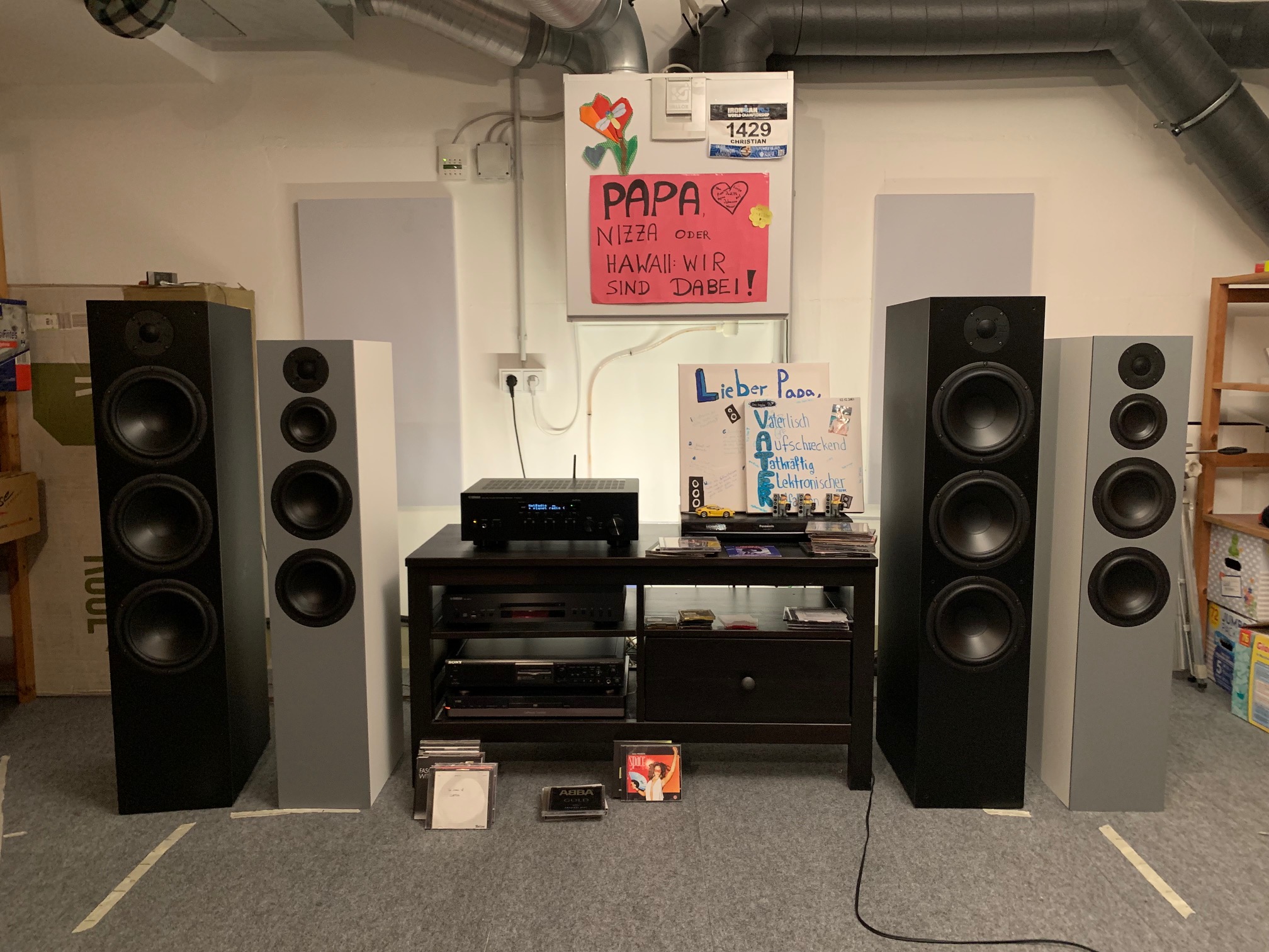 Was mir bei der neuen Serie zunächst auffiel: die Höhen sind recht kräftig. Aber das passt, wenn man beachtet, dass die nuBoxx Modelle nicht stark eingewinkelt werden sollten. Herr Bien empfahl eine wandparallele Aufstellung, die Bedienungsanleitung wird dementsprechend noch entsprechend angepasst. So aufgestellt mit ca. 2,5m Hörabstand, 2m Basisbreite und 1,1m Abstand der Front zur Rückwand ergibt sich ein schöner, harmonischer Klang.