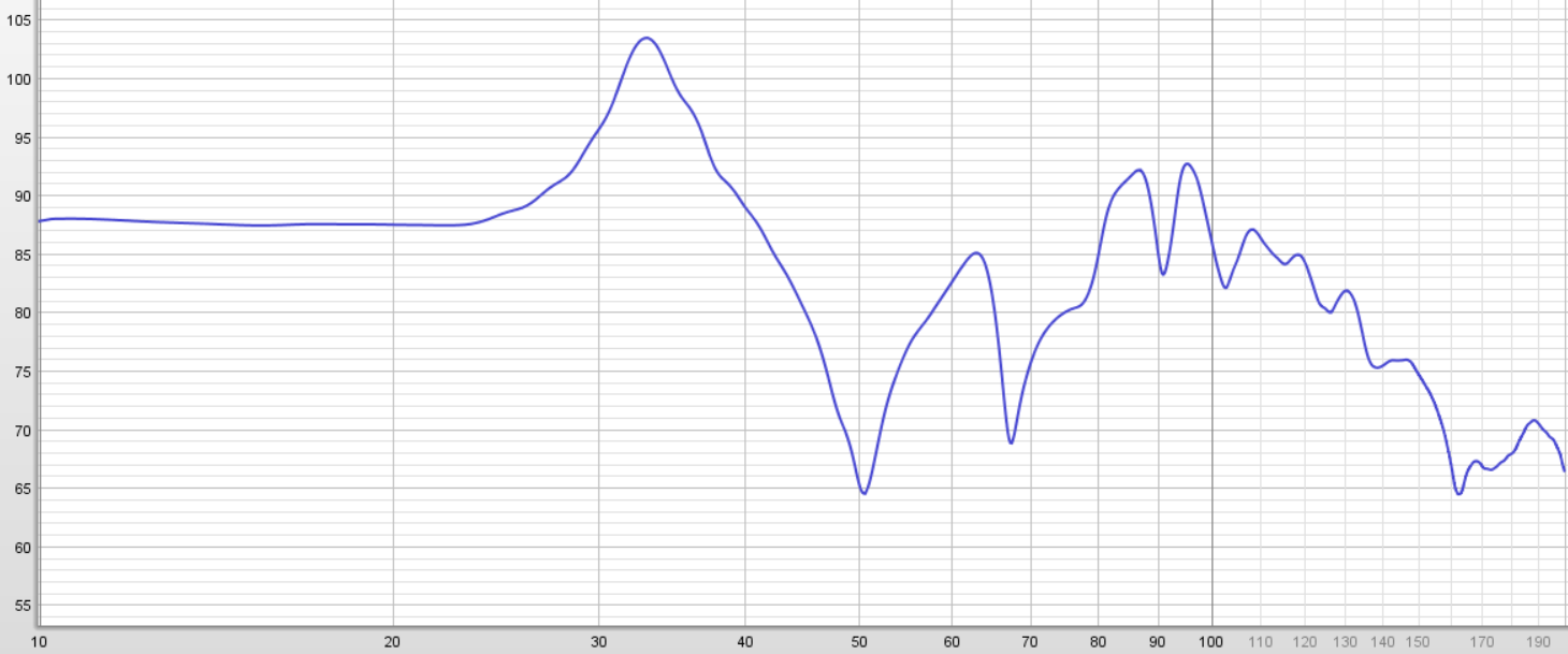 Hier das Summensignal meiner Front-Subs (die Einzelmessungen sehen fast identisch aus bis auf den Oberbass):