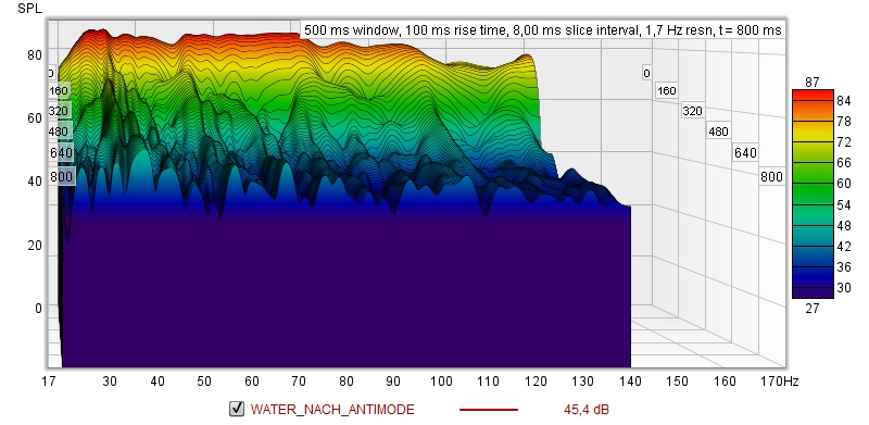 Die Überhöhung um 65 Hz sieht nach Längsmode (5,20Meter) zweiter Ordnung aus - ggf. hilft Verschieben der Länge nach noch etwas.