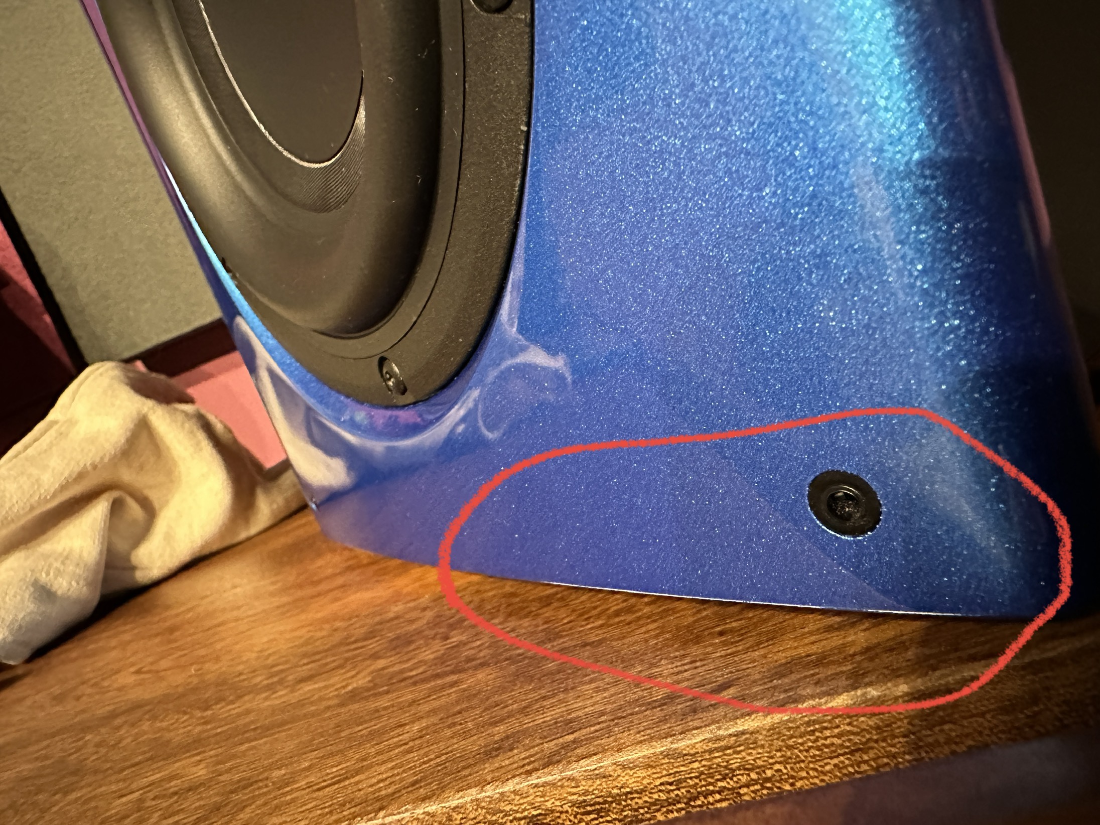 Das 2. Paar der 60er haben ziemliche Lackmängel am Klangsegel. Der Rechte Lautsprecher stark, der Linke leicht.