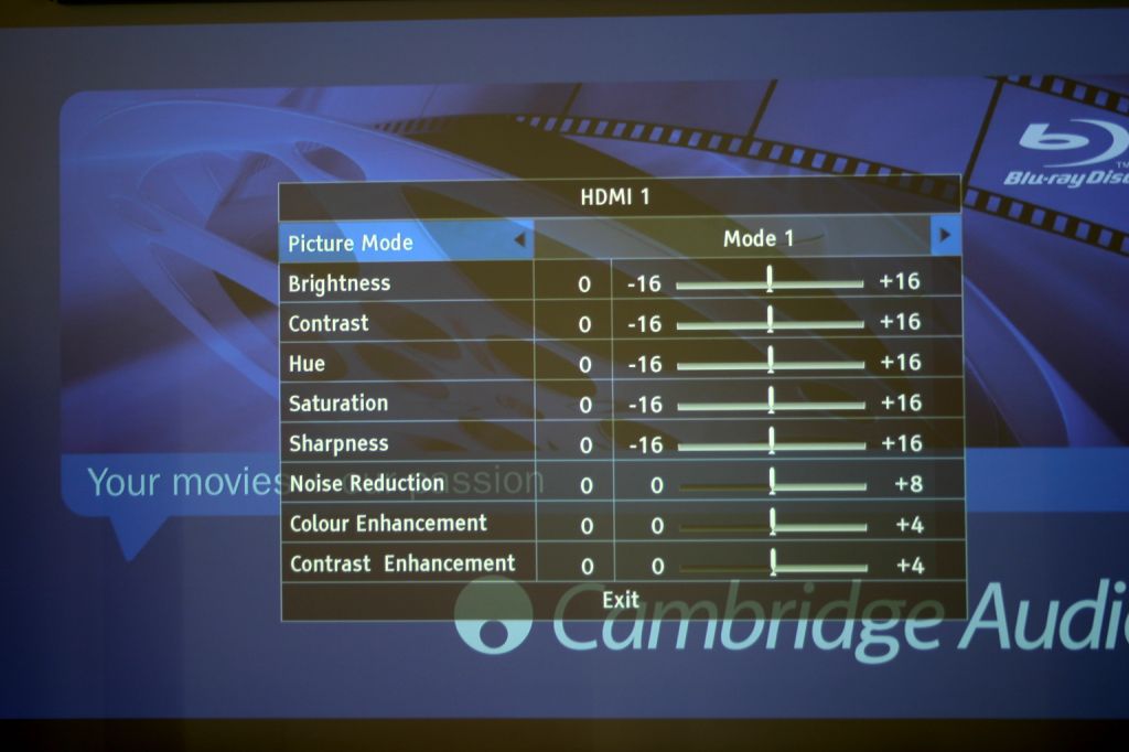 Leider hat Cambridge es immer noch nicht gelernt, dass es auch andere Sprachen als Englisch gibt. Man kann zwar die Sprache des Menüs anwählen, als Auswahl erscheint dort aber nur "English". Zumindest ist es per Zahlenkombination möglich, die Standardsprachen für die BluRay- und Audiomenüs auszuwählen. Für die Bildeinstellung bietet der CA umfangreiche Einstellmöglichkeiten. Ich habe diese aber auf den Werkseinstellungen gelassen: