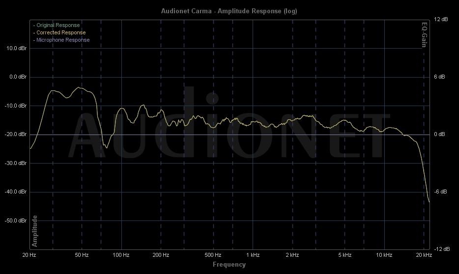 Als ich meine nuVero 14 bekam und das erste Mal Musik damit hörte, meinte ich, ich säße im falschen Film: Es war zwar Tiefbass vorhanden, aber der Kickbass um 50 Hz, durch den Popmusik erst richtig Spaß macht, weil sich in diesem Bereich die Bassdrum bewegt, fehlte einfach. Glücklicherweise hatte ich mir gleich ein ATM mitbestellt, allerdings sah die Ausgangslage auch bei eingeschaltetem ATM, alles in Linear-Stellung, nicht gerade rosig aus. Eine Messung mit CARMA bestätigte das Problem. Die linke Box zeigt, deutlich zu sehen, einen Einbruch bei ca. 80 Hz: