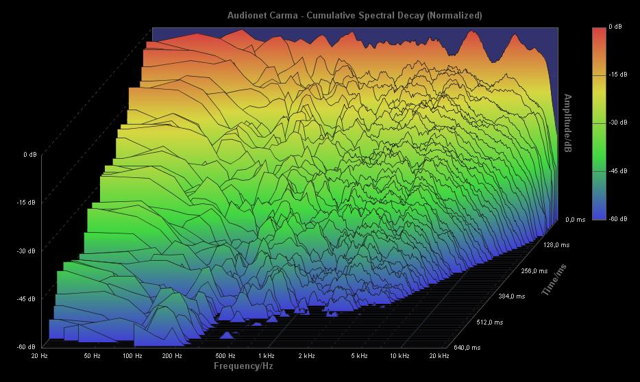 Die Wasserfalldiagramme zeigen, dass ich mir damit aber größere Nachhallzeiten im Bass einhandelte, was man stellenweise auch hörte: