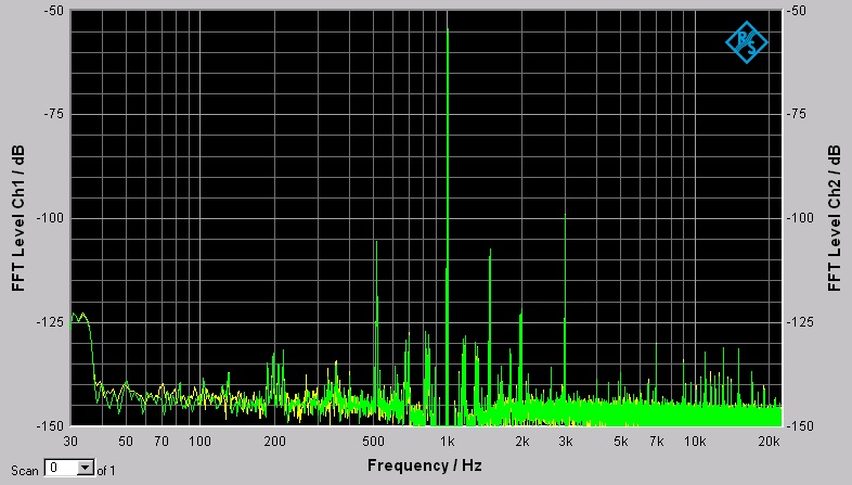 Bei Allen FFT's wurde die Fundamentalfrequenz (1Khz) durch den analogen Kerbfilter auf wesentlich niedrigere Pegel "gedrückt". Es wurde immer mit 200kOhm Eingangswiderstand gemessen, bis auf die eine +3db Messung