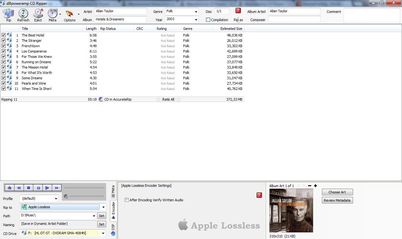 dBpoweramp nutze ich seid einiger Zeit zum rippen meiner CD´s auf die Festplatte und bin von Anfang an sehr begeistert über die Funktionsweise und Leistungsfähigkeit diesen Programms.