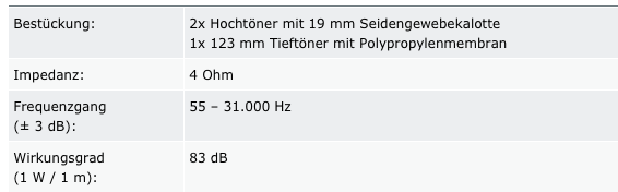 Klar 19mm statt 25mm. Aber das wäre dann die einzige Box im gesamten Nubert-Sortiment. Selbst die nuVeros, nuBoxen und restlichen nuLines kommen nicht annähernd dort hin. 26.000 Hz wäre da schon ein sehr hoher Wert.Goisbart hat geschrieben:Hat die nicht den kleineren Hochtöner? Es wäre nicht unplausibel wenn sie damit höher kommt.