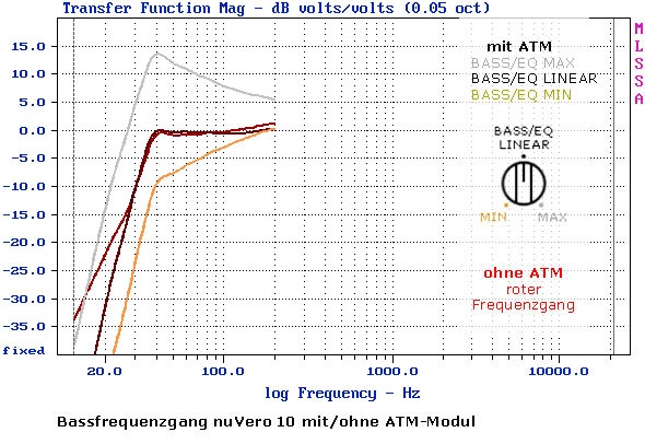 Das das ATM-4 den Bass aufdickt, liegt sicherlich daran, das eben das ATM-4 für die nuVero 4 entwickelt wurde, wo die untere Frequenz ja bei ca 41hz. liegt (mit ATM).