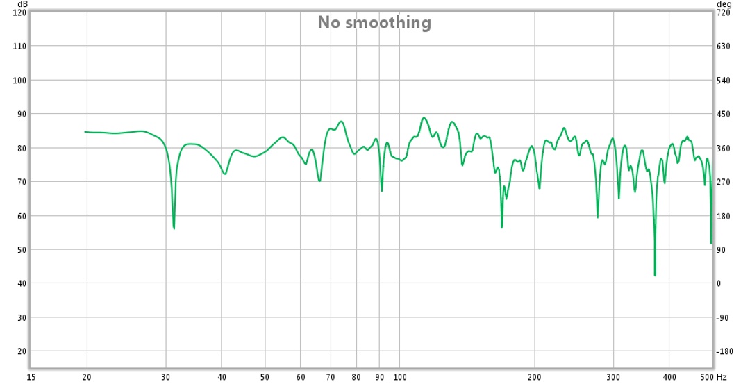 Man sieht das um die Trennfrequenz herum sich der Frequenzgang etwas bessert, jedoch wird es darunter wellig. Die Messung ist jetzt zwar nicht geglättet, aber dieses Verhalten lässt sich immer wieder herstellen und damit bestätigen. Bei anderen Trennfrequenzen (40Hz/60Hz) ergibt sich ein ähnliches Bild.