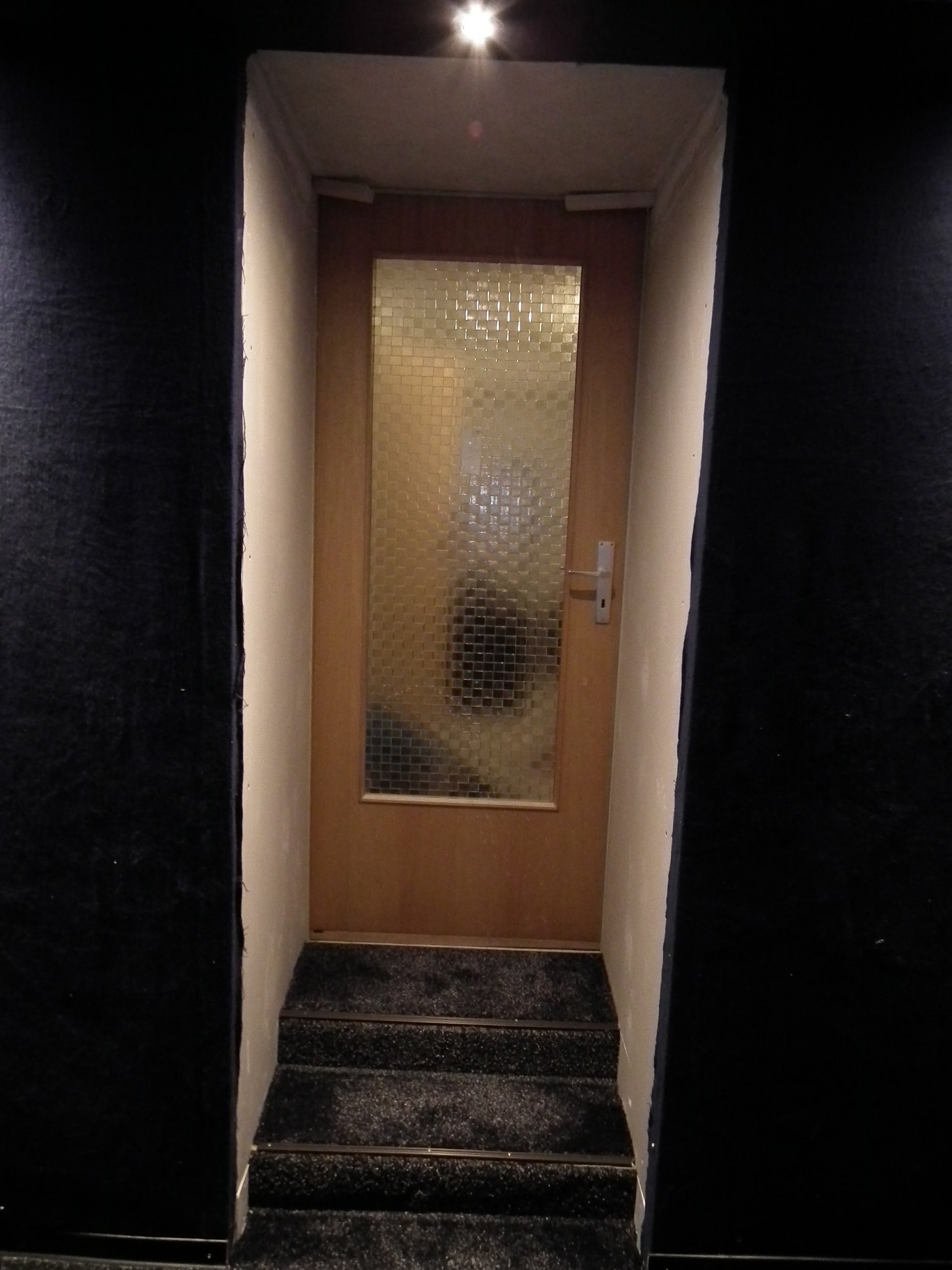Was anderes: Alleine aus optischen Gründen würde ich die gesamte Nische mit einem Vorhang abhängen. Wäre doch irgendwie auch cool, wenn man das Kino durch einen Vorhang betritt. Müsste also zweigeteilt sein. Wenn da ein Vorhang hängt, ist die Tür Dein kleinstes Problem.