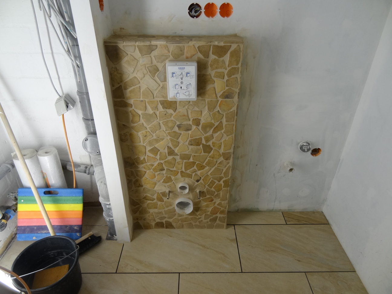Das Klo ist nun verfliest , morgen wird verfugt.
