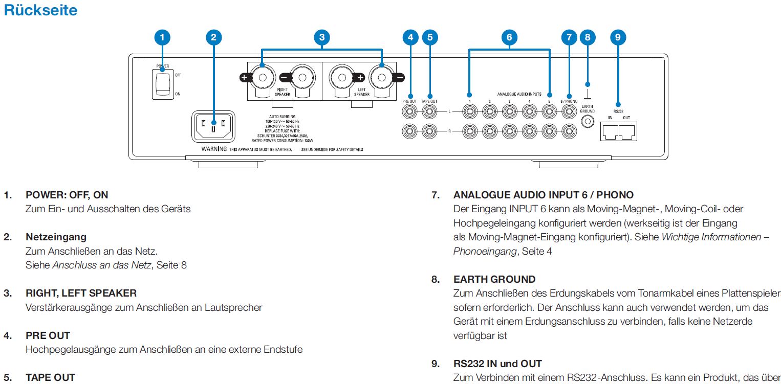 Warum finde ich hier http://www.linn.co.uk/all-products/powe ... rs/majik-i in der "Owner's Manual (de)" nicht die von dir angegebenen Anschlüsse :?: