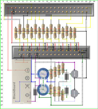 Zusätzlich wird wahrscheinlich noch eine kleine Platine zur Stabilisierung der 5V nötig werden, damit der PI nicht abstürzt, wenn ich das Handy zum Laden einstecke. Aber das wird ein Test zeigen, vielleicht reicht die im Netzteil enthaltene Stabilisierung schon aus.