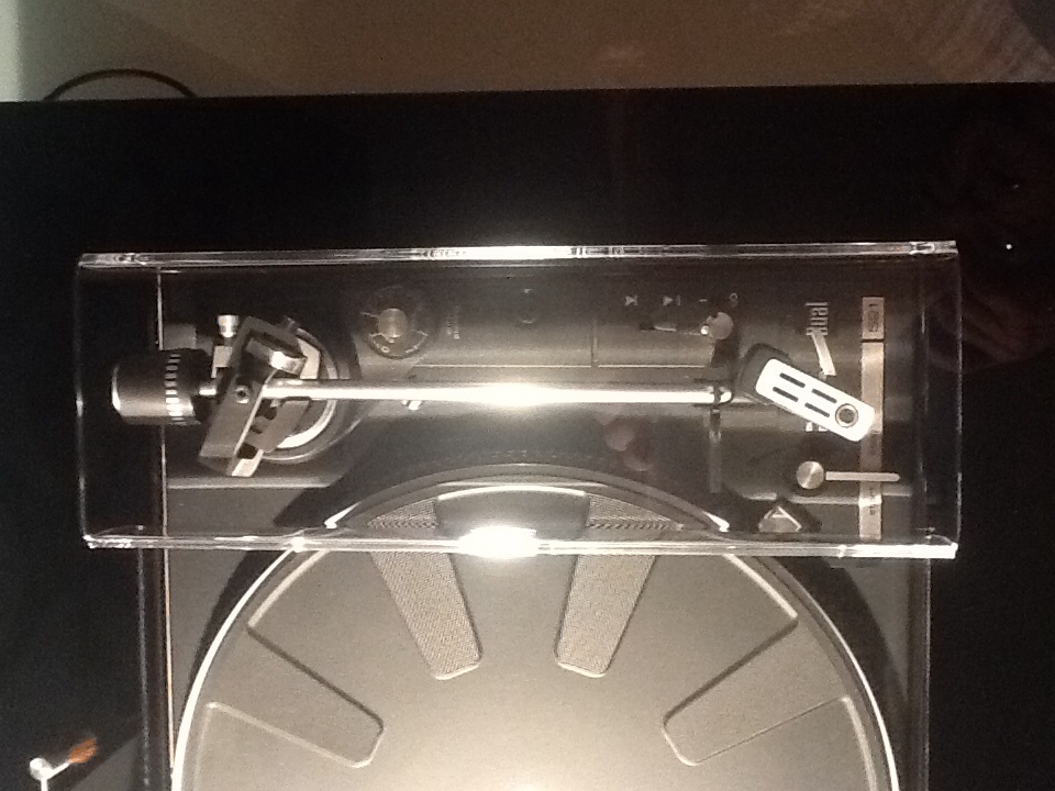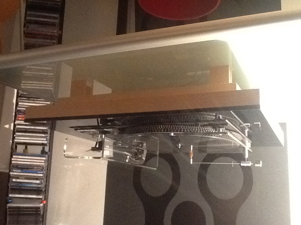 Die "Haube" aus klarem Acryl, 5mm. Zugegebenermaßen habe ich mich da inspirieren lassen, aber die Haube ist der Brüller. Besser als die Vorbilder. Der Tonarm wirkt von oben gesehen, als ob er in einer gläsernen Schatztruhe liegt.